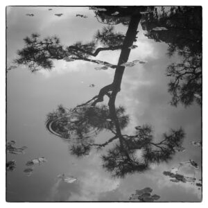 Het Japanse woord Sansaku betekent lopend verkennen. Ik gebruik het als titel van een fotoproject dat een contemplatieve wandeling in vijftien foto’s verbeeldt. Daarbij is de presentatie essentieel. De foto’s bevinden zich in een handgemaakte verpakking en kunnen alleen maar met zorgvuldigheid en rust worden uitgepakt. De fysieke ervaring is daarbij een wezenlijk onderdeel van Sansaku. Een presentatie in een galerij op een website doet eigenlijk geen recht aan het werk.